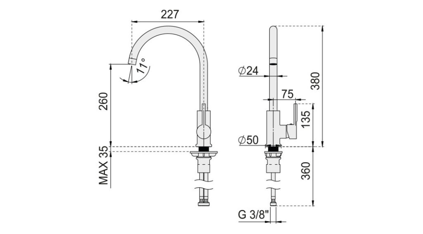 Η μπαταρία νεροχύτη “VENECIA” συνδυάζει μοντέρνο σχεδιασμό με πρακτική χρήση. Το καμπύλο στόμιο διευκολύνει τη ροή του νερού, ενώ ο αεριστήρας περιορίζει τα άλατα. Η κεραμική κασέτα εξασφαλίζει σταθερή και ασφαλή λειτουργία. Οι εύκαμπτες συνδέσεις κάνουν την εγκατάσταση γρήγορη και εύκολη.