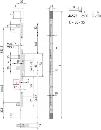 Κλειδαριά 3 Δημείων Αλουμινίου Σιδήρου 35mm